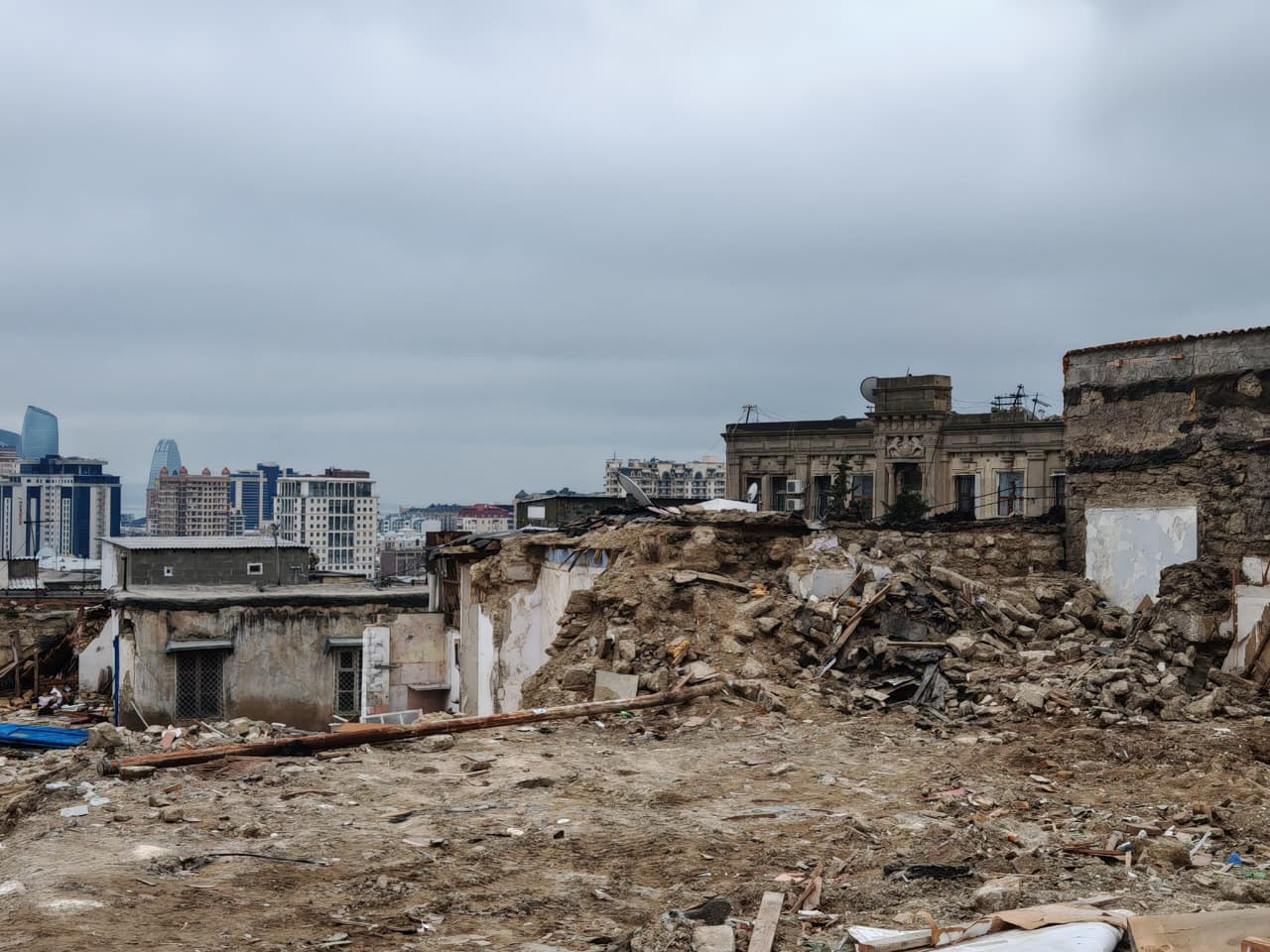 "Sovetski"də bu gün görünən dağıntı mənzərəsi əslində sabahın quruculuq səhnəsidir. Şəhərin siluetində uzaqda yüksələn müasir binalar, yenilənən infrastruktur və genişlənən urban mühit bu transformasiyanın istiqamətini aydın göstərir. Keçmişlə gələcəyin vizual kontrastı burada daha qabarıq hiss olunur: bir tərəfdə köhnə daş divarlar, digər tərəfdə isə yüksələn müasir Bakının panoraması.