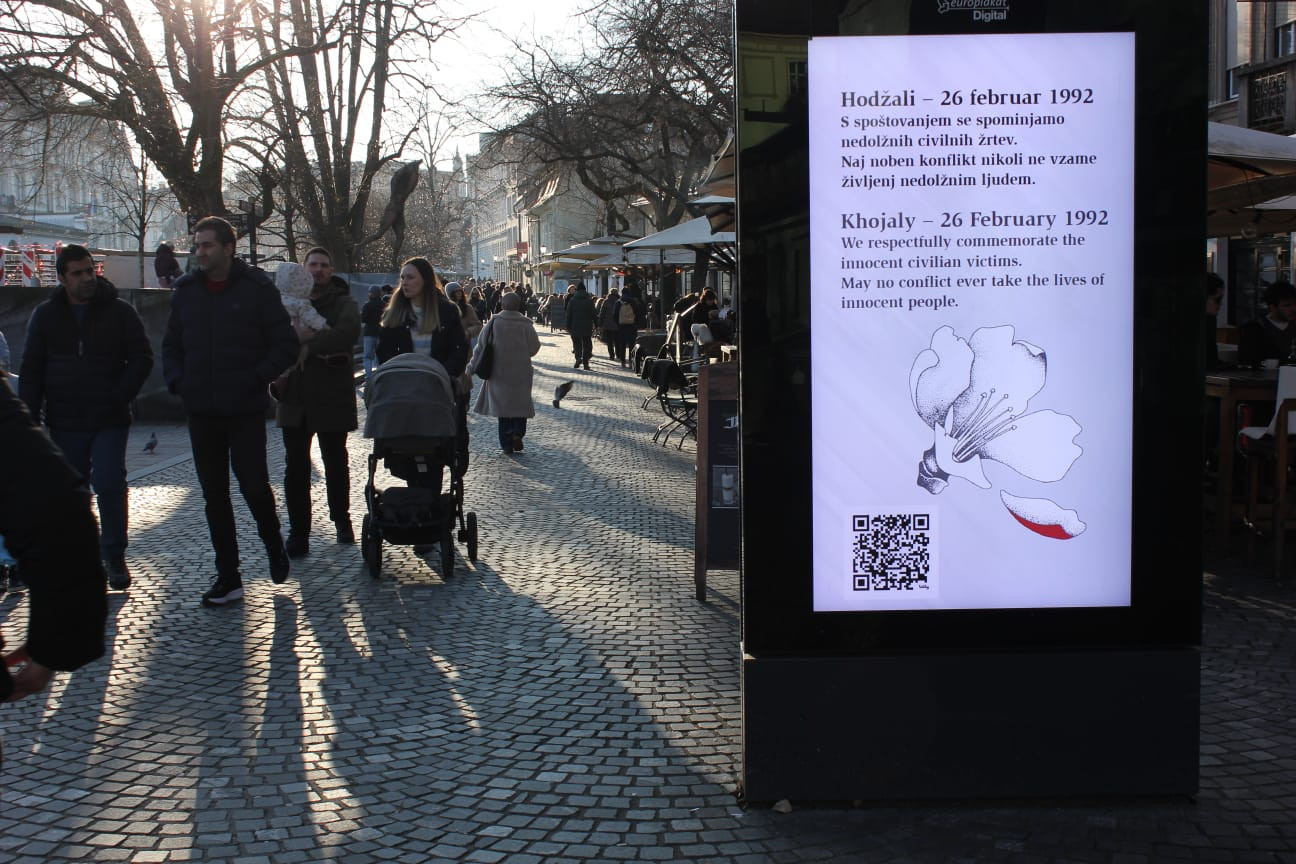 Xocalı soyqırımının 34-cü ildönümü ilə əlaqədar olaraq Sloveniyanın paytaxtı Lyublyana şəhərinin mərkəzi küçələrində yerləşən rəqəmsal reklam lövhələrində maarifləndirmə aksiyası keçirilib.