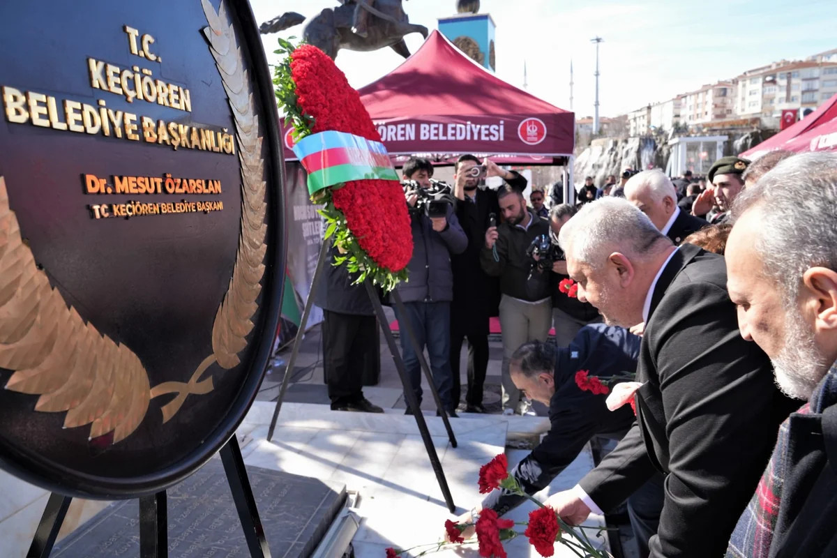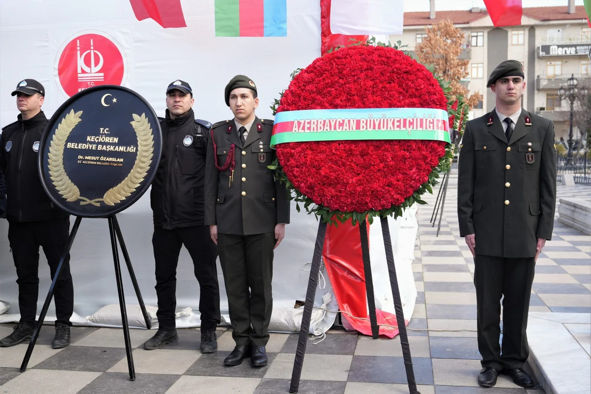 Ankaranın Keçiören rayonunda Xocalı Abidəsinin qarşısında anım mərasimi keçirilib.