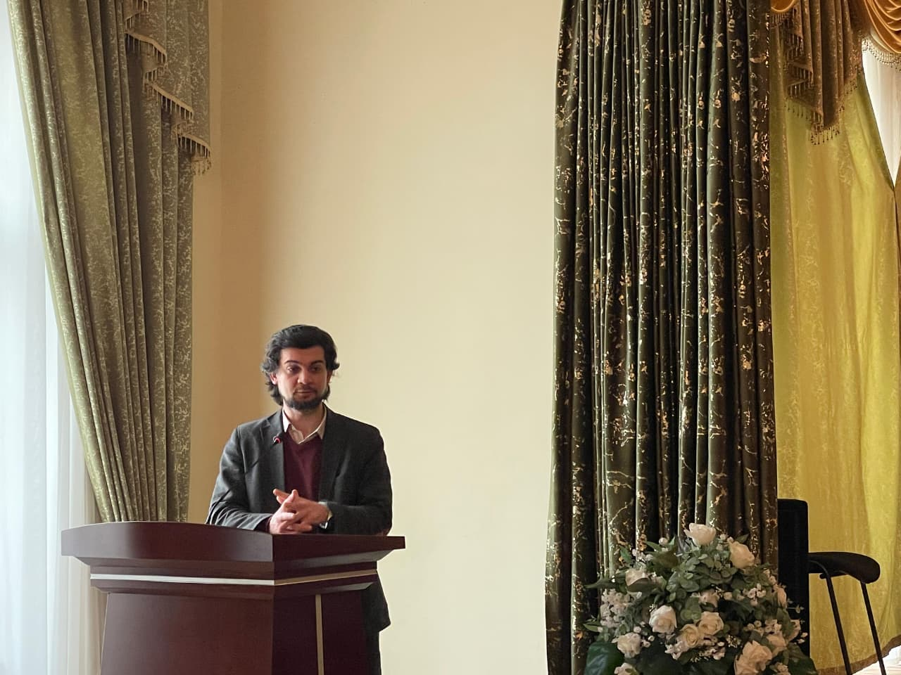 Burada əyləşən bizim gənc bəstəkarımız – artıq o qədər də gənc deyil (gülür),– Tahir İbişov da var ki, doğrudan da çox istedadlı bir insandır. Təkcə bəstəkarlıq sahəsində yox. Biz Almaniyaya yola düşəndə Tahirin təkcə bəstəkar olaraq yox, həm də çox gözəl təşkilatçı və dirijor kimi fəaliyyətini gördük. Hətta mən deyərdim ki, o, Nəsiminin əsərlərini Almaniyada səhnəyə çıxararaq alman dinləyicisinə çox gözəl şəkildə çatdırdı və bu çox gözəl səsləndi. Ona görə də Tahir İbişov bizim böyük planlarımızın bağlı olduğu bəstəkarlardan biridir. Bugünkü filmə də musiqini o yazıb. Bilmirəm bu işdən nə qədər məmnundur, amma özü bu haqda sizə danışacaq, öz hisslərini və düşüncələrini çatdıracaq.