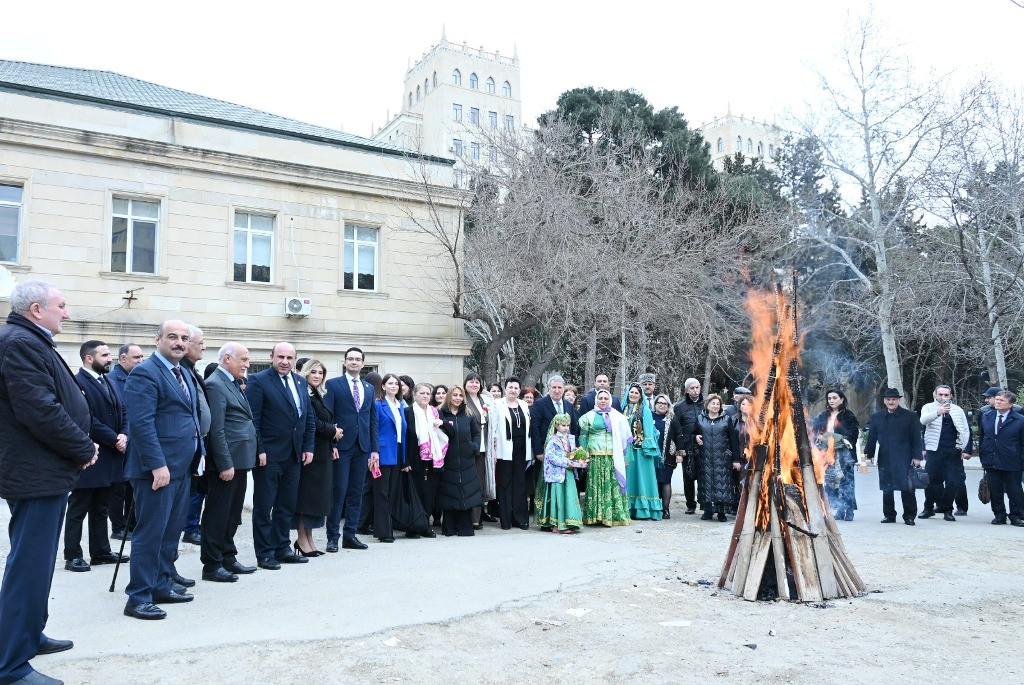 Sonda AMEA-nın şəhərciyində yerləşən Nadir ağaclar parkının qarşısında Novruz tonqalı qalanıb, Akademiya əməkdaşları və tədbir iştirakçıları tonqal ətrafında bir araya gələrək bayram əhvali-ruhiyyəsini bölüşüblər.