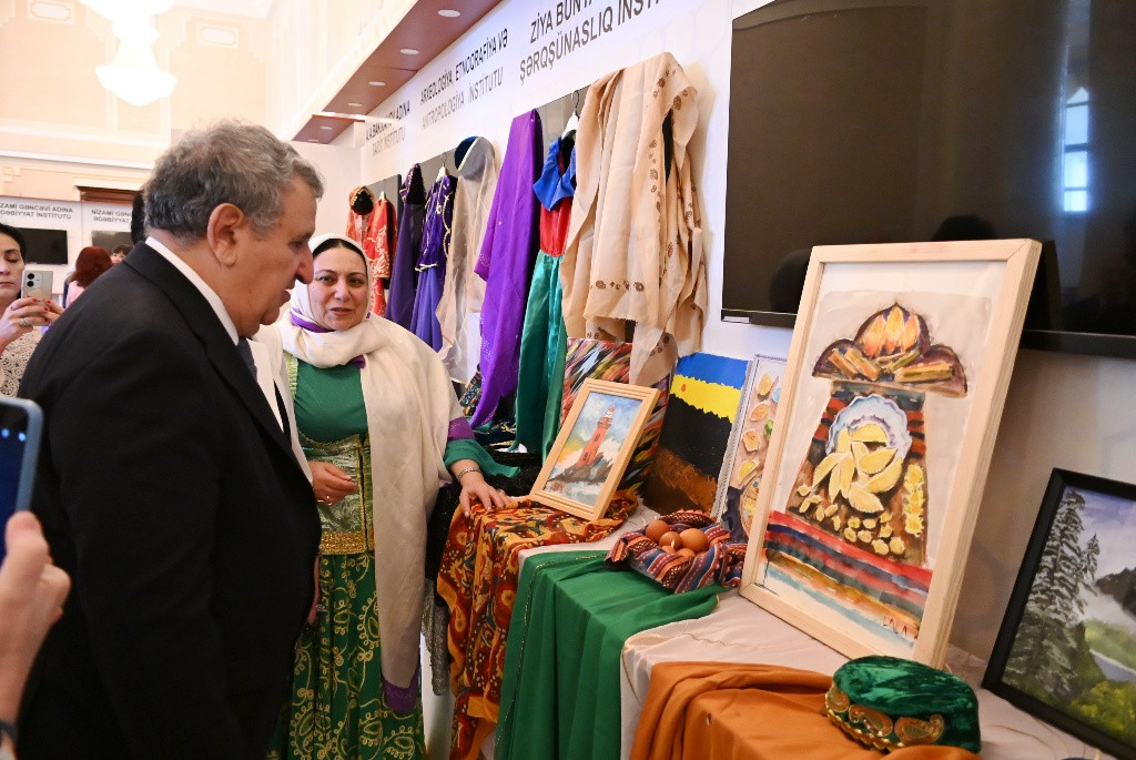 Əvvəlcə gənc rəssamların Novruz bayramının ruhunu və milli koloritini əks etdirən əsərlərindən və etnoqrafik materiallardan ibarət sərgiyə baxış olub.