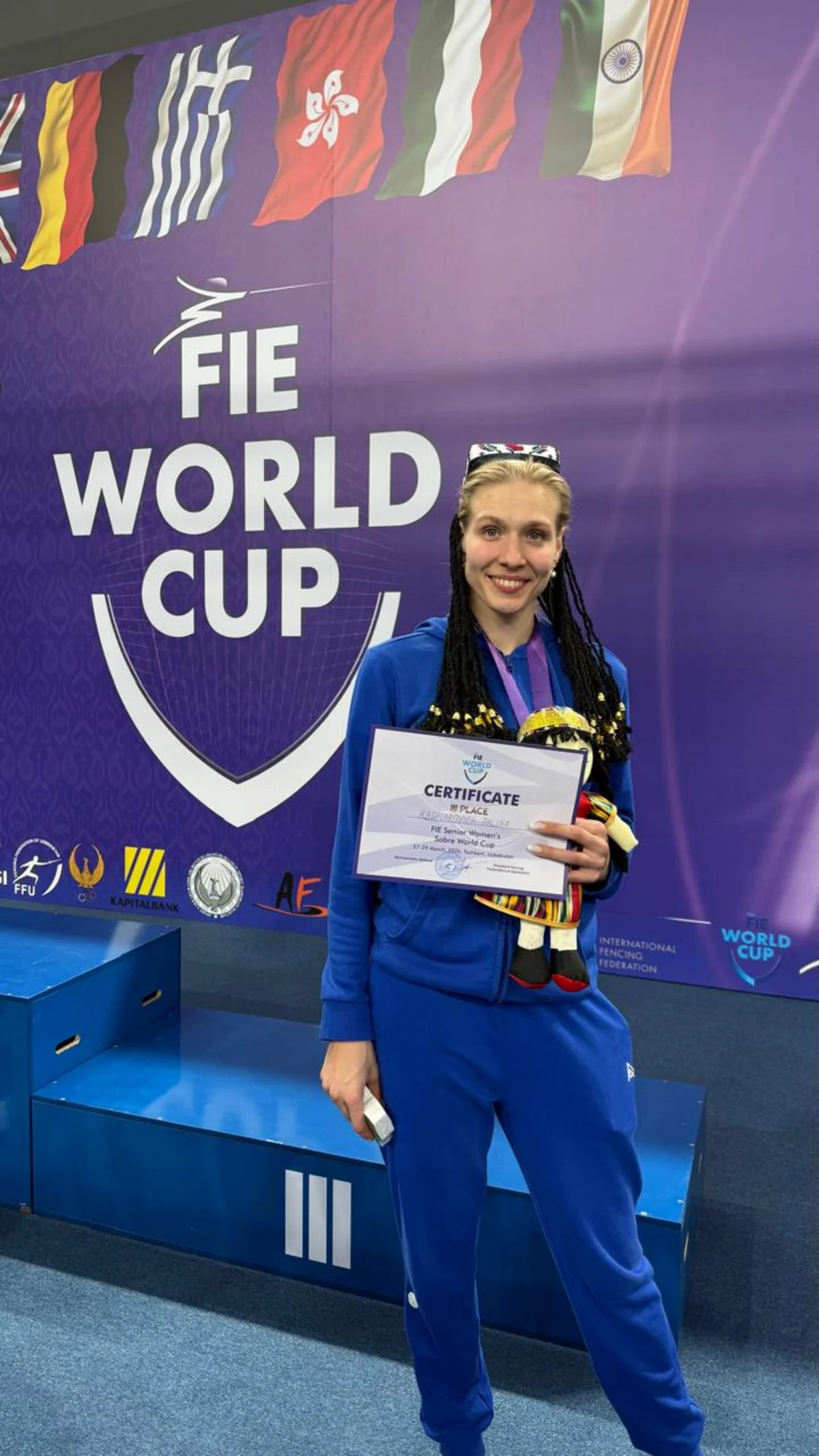 Qılıncoynatmanın sablya növü üzrə qadınlardan ibarət milli komandamızın üzvü Palina Kaspiaroviç Özbəkistanın paytaxtı Daşkənddə keçirilən Dünya Kubokunun mərhələ yarışında bürünc medal qazanıb.