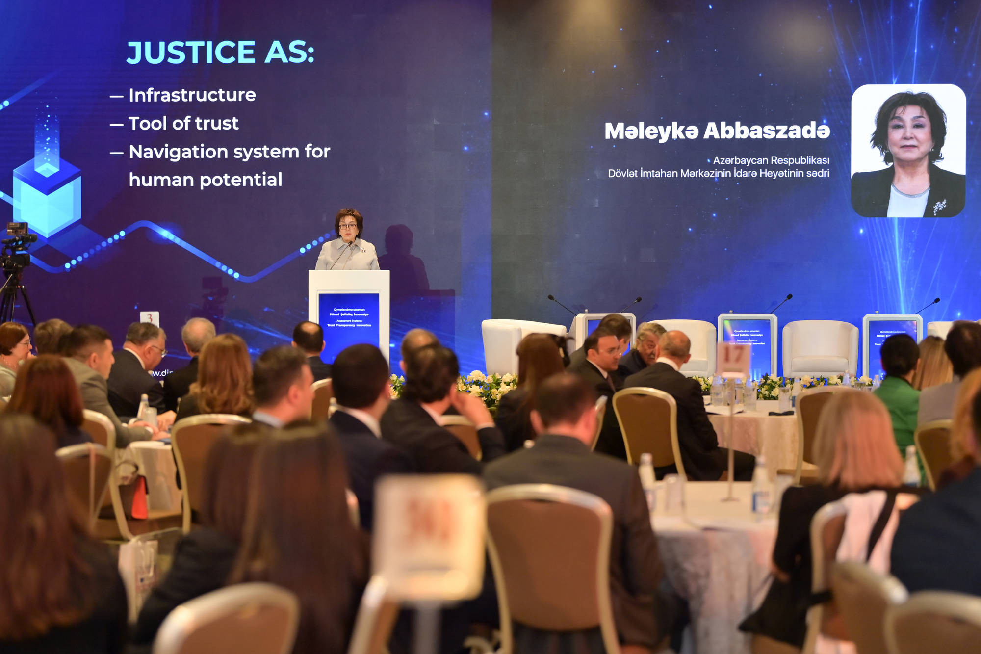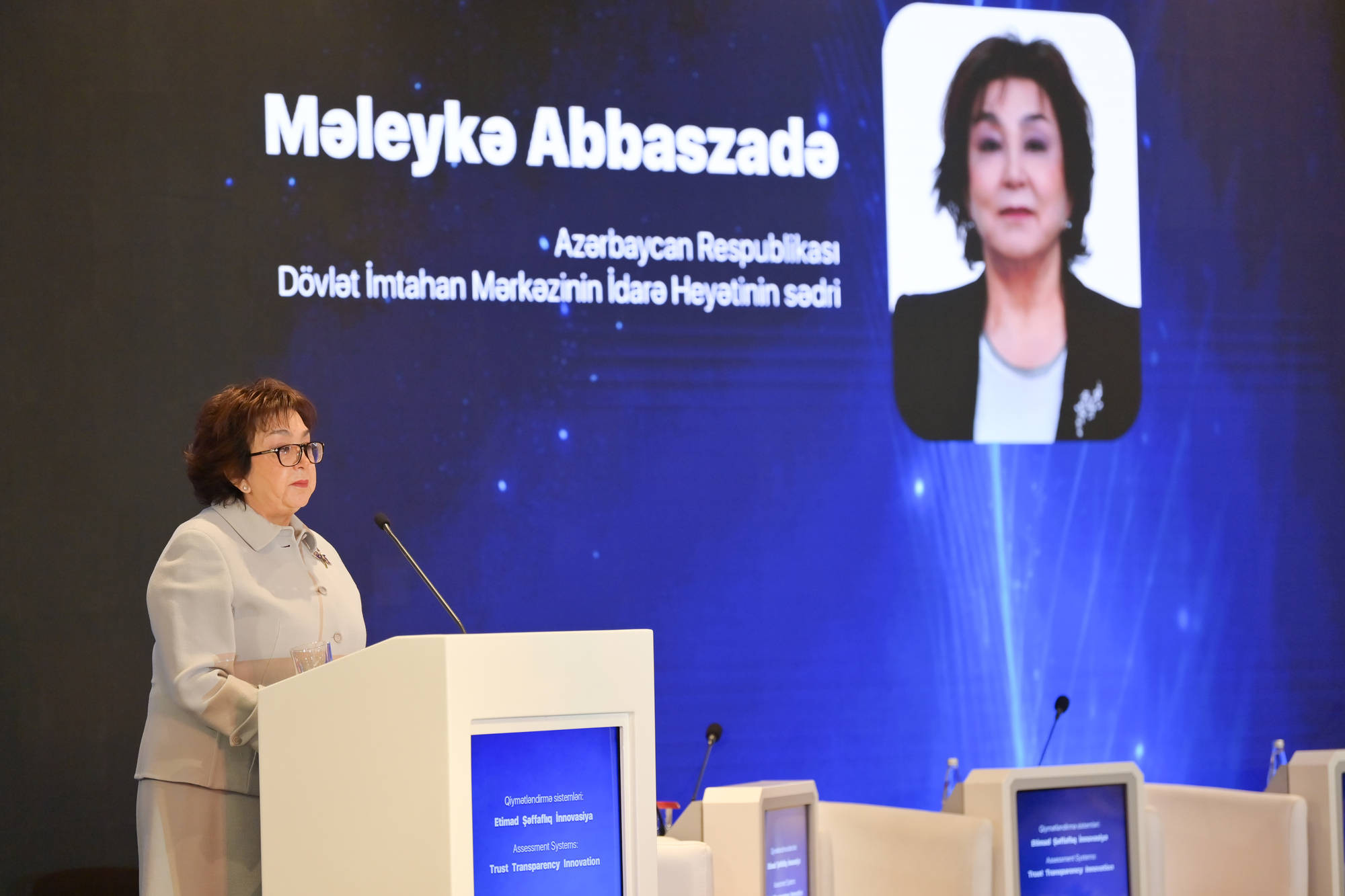 Konfransı giriş sözü ilə açan Dövlət İmtahan Mərkəzinin İdarə Heyətinin sədri Məleykə Abbaszadə qonaqları salamlayıb və bu 10 ilin milyonlarla vətəndaşımızın həyat yolunun ayrılmaz hissəsinə çevrilmiş bir təşkilatın inkişafında mühüm mərhələ olduğunu qeyd edib. Sədr Mərkəzin tarixinin yalnız bu 10 ildən ibarət olmadığını, onun xeyli əvvəl – ölkədə subyektiv qərarlara deyil, biliklərə əsaslanan qiymətləndirmə sisteminin yaradılması lehinə prinsipial siyasi seçimin edildiyi andan başladığını vurğulayıb.