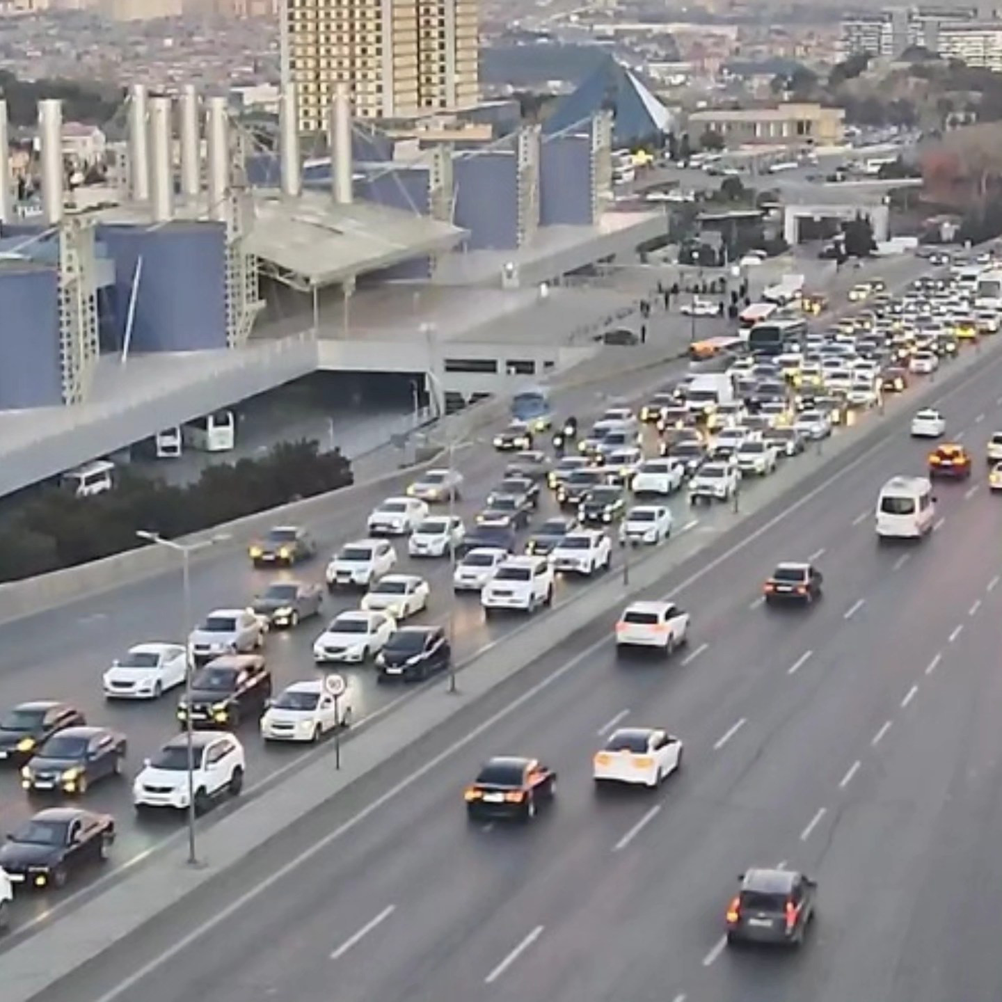 11. Binəqədi şosesi, "Azadlıq prospekti" metro stansiyası istiqamətində sıxlıq müşahidə olunur.