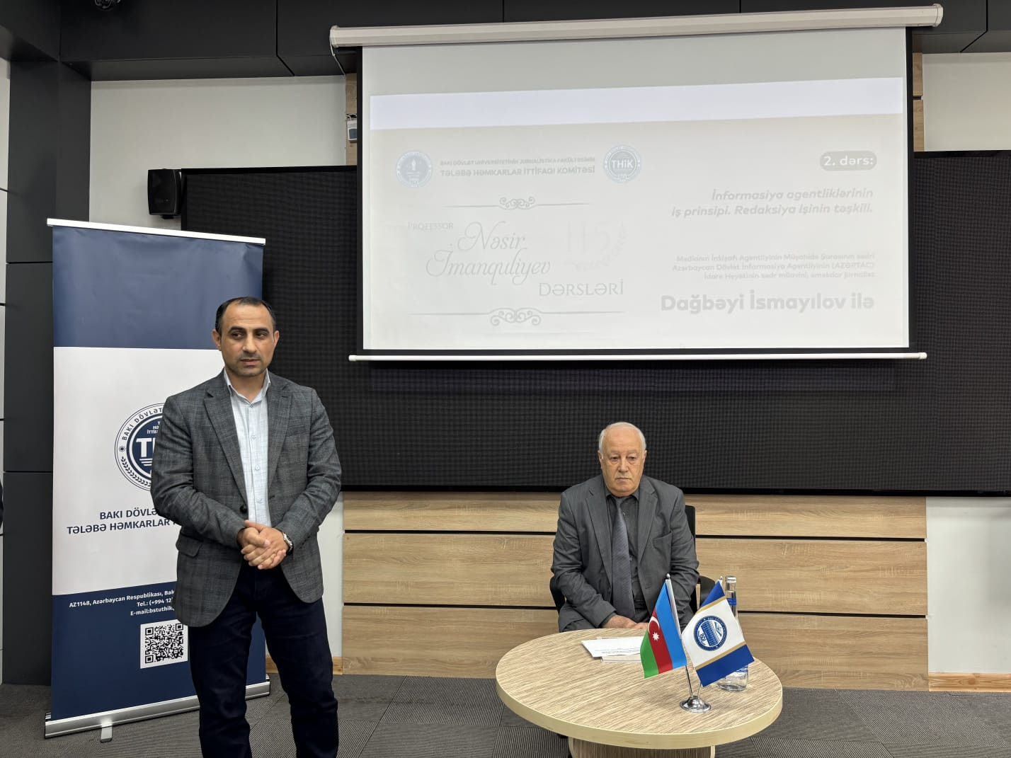 Bakı Dövlət Universitetinin (BDU) Tələbə Həmkarlar İttifaqı Komitəsinin (THİK) Jurnalistika fakültəsi üzrə üzvlərinin təşkilatçılığı ilə Azərbaycanın görkəmli jurnalisti, tanınmış ictimai xadim, professor Nəsir İmanquliyevin 115 illik yubileyinə həsr olunmuş “Professor Nəsir İmanquliyev dərsləri” layihəsinin növbəti qonağı Medianın İnkişafı Agentliyinin Müşahidə Şurasının sədri, Azərbaycan Dövlət İnformasiya Agentliyinin (AZƏRTAC) İdarə Heyəti sədrinin müavini, Əməkdar jurnalist Dağbəyi İsmayılov olub. Layihənin ikinci dərsi “İnformasiya agentliklərinin iş prinsipi. "Redaksiya işinin təşkili” mövzusunda keçirilib.