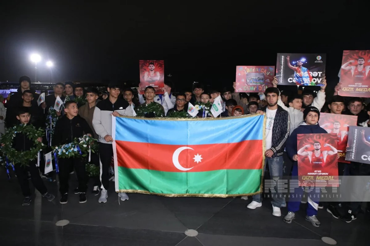 Albaniyada keçirilən Avropa çempionatında 2 qızıl, 3 bürünc medal qazanaraq komanda hesabında Avropa çempionu olan yunan-Roma güləşi üzrə milli komandanın Heydər Əliyev Aeroportunda qarşılanma mərasimi keçirilib.