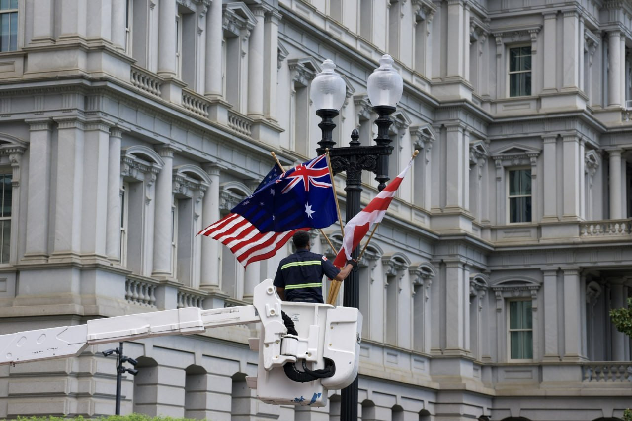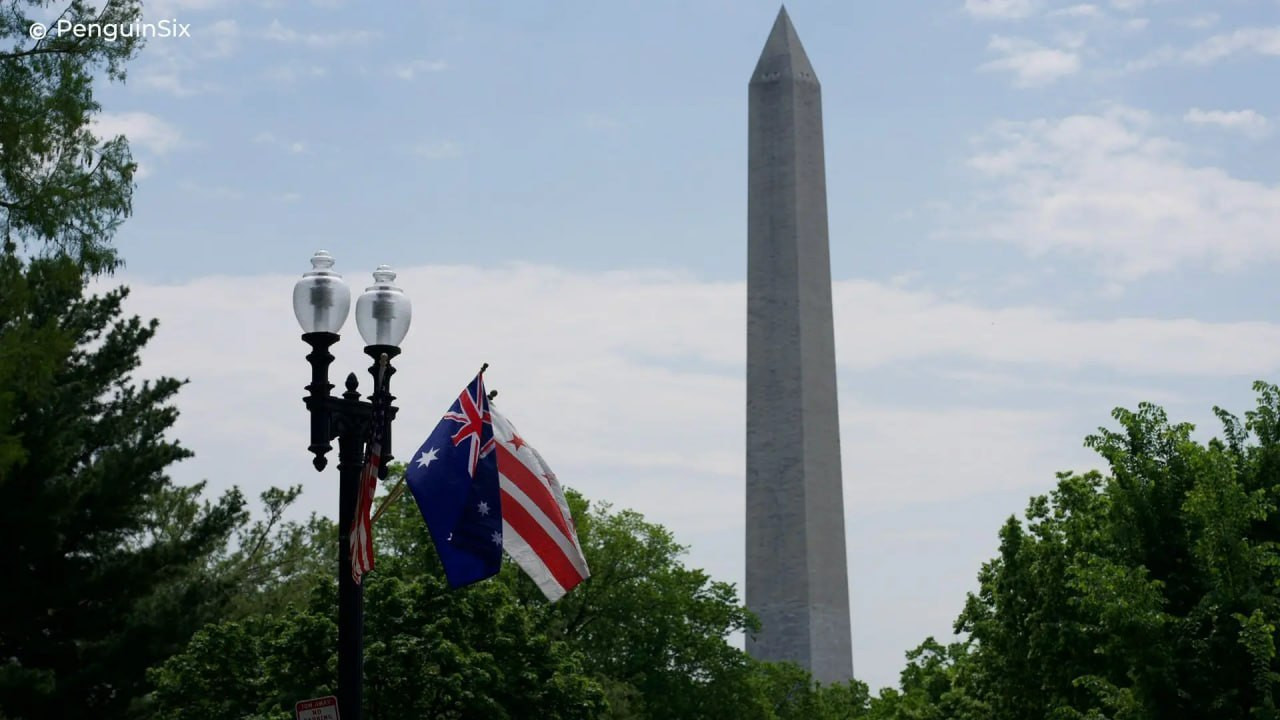 ABŞ -nin paytaxtı Vaşinqtonda Britaniya bayraqları əvəzinə Avstraliya bayraqları asılıb.