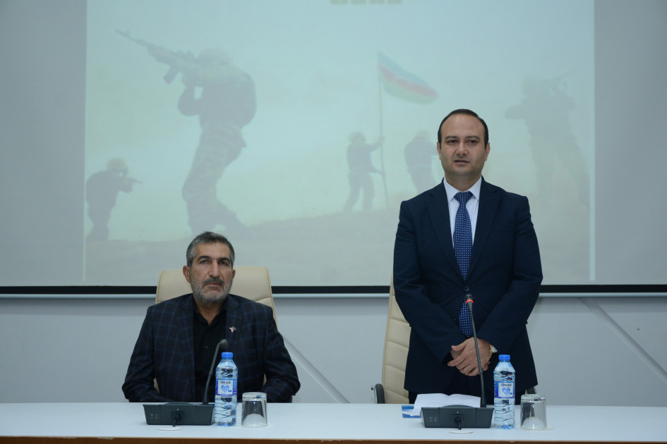 Aİİ rektoru Aqil Şirinov açılış nitqi ilə çıxış edərək, Vətən müharibəsində qəhrəmancasına döyüşmüş, Azərbaycan Bayrağını işğaldan azad olunan torpaqlarımızda dalğalandırmış, ölkəmizin ərazi bütövlüyü yolunda canlarını fəda etmiş əsgər və zabitlərimizi, bütün şəhidlərimizi dərin ehtiramla yad edib.