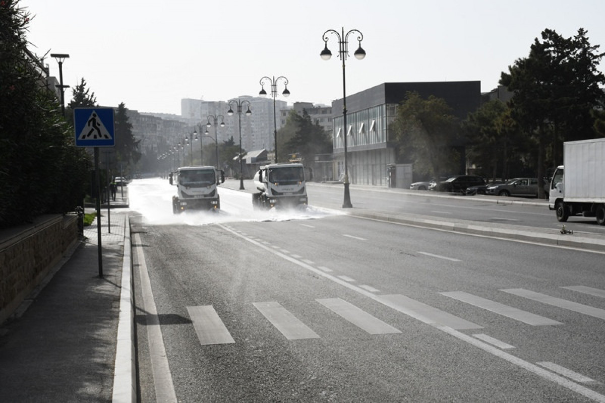 Bakı Şəhər İcra Hakimiyyətindən Crossmedia.az-a verilən xəbərə görə, Bakı Şəhər İcra Hakimiyyəti Kommunal təsərrüfat xidmətlərinin texnikası səhər saatlarından başlayaraq bitki və canlılara zərər verməyən yuyucu maddələrlə əsas küçə və prospektlərin yuyulmasını aparıb.