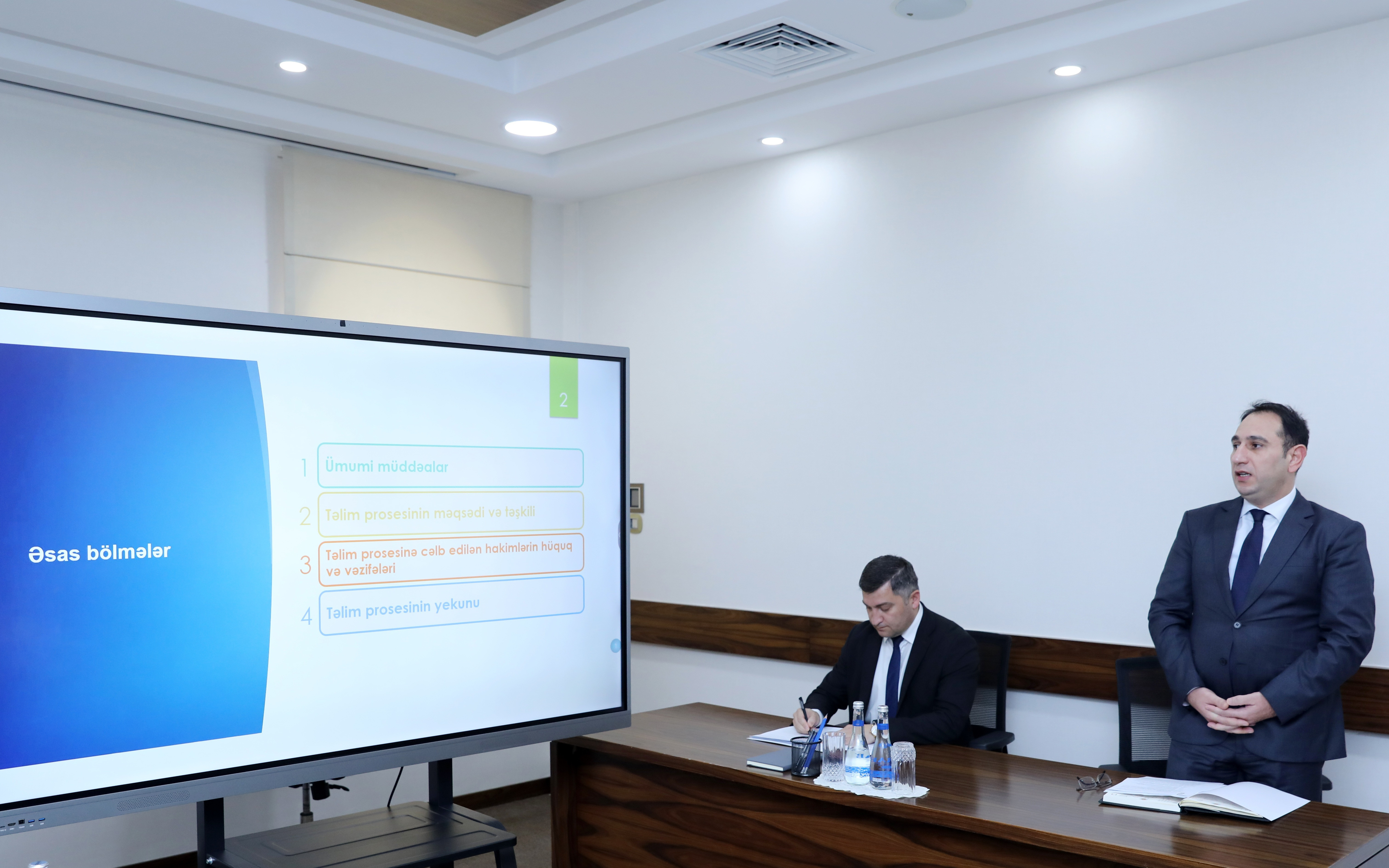 İclasda “İlk dəfə 3 il müddətinə təyin olunan hakimlərin təlimə cəlb edilməsi Qaydaları” layihəsi və “Azərbaycan Respublikası apellyasiya, ağır cinayətlər, hərbi, inzibati və kommersiya məhkəmələrinin ərazi yurisdiksiyası”nda dəyişiklik edilməsi barədə qərar layihəsi təsdiq edilib.