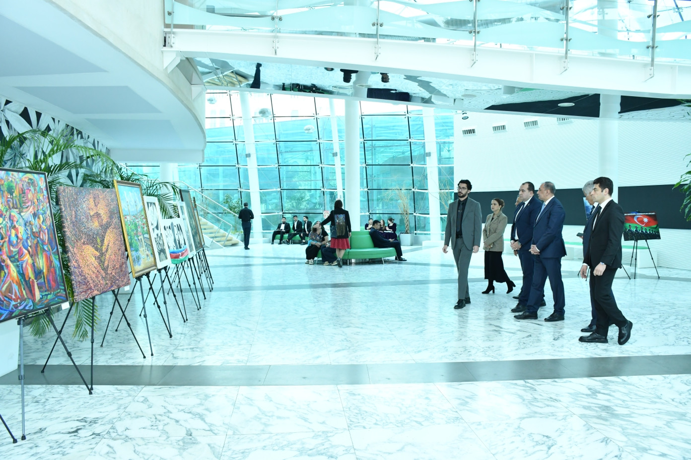 Qonaqlar əvvəlcə Dövlət Rəsm Qalereyası tərəfindən Muğam Mərkəzinin foyesində Zəfərimizin 5-ci ildönümü münasibətilə təşkil edilən rəsm sərgisi ilə tanış olublar. Sərgidə tanınmış sənətkarlar Arif Hüseynov, Mir Azər Abdullayev, Tahir Şıxəliyev, Nazim Məmmədov, eləcə də bir neçə gənc rəssamın qrafika, rəngkarlıq və plakat janrlarında işlənmiş 21 əsəri yer alıb.