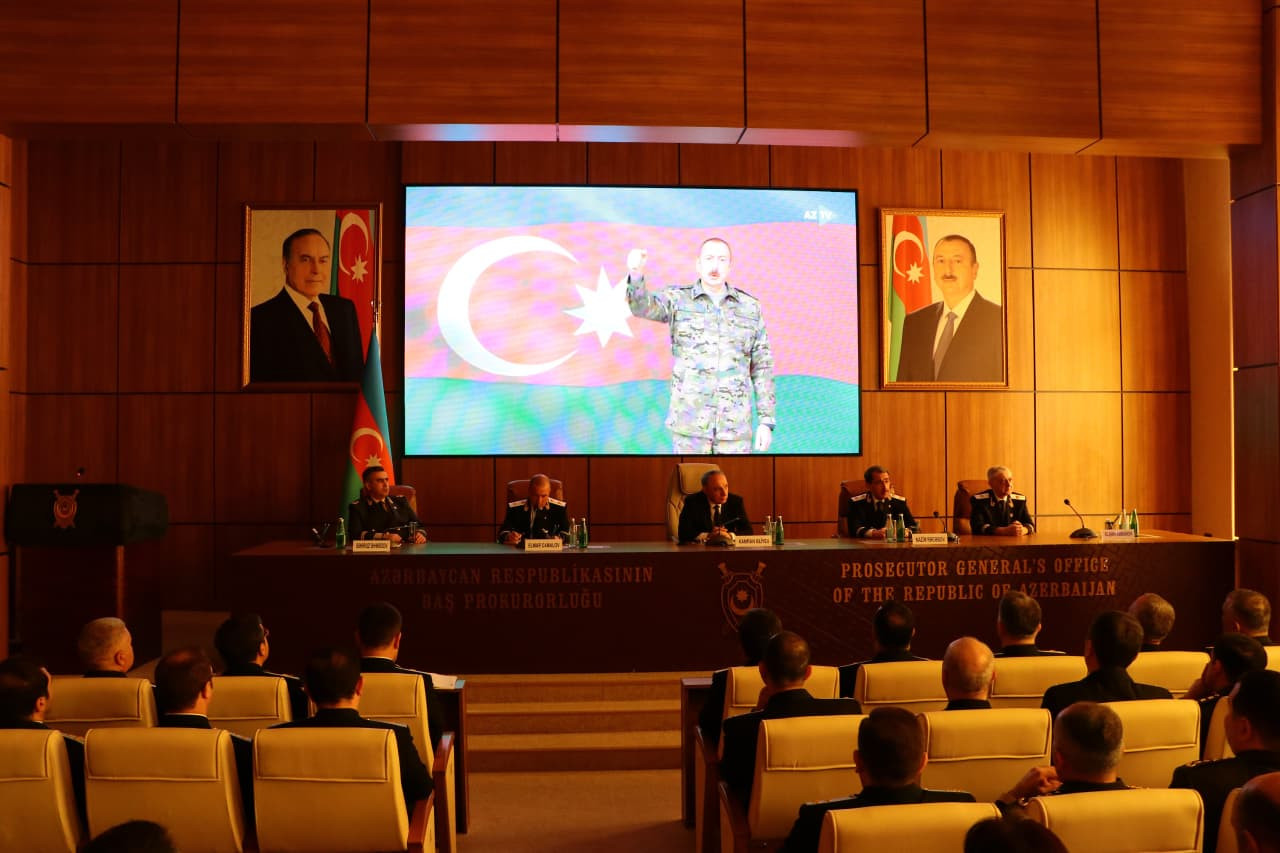 Baş prokuror Kamran Əliyev çıxış edərək bildirib ki, əldə edilmiş zəfərə görə prezident, Silahlı Qüvvələrin Müzəffər Ali Baş Komandanı İlham Əliyevə və rəşadətli Azərbaycan Ordusuna dərin minnətdarlığını ifadə edərək, torpaqlarımızın və ərazi bütövlüyümüzün bərpası uğrundan canlarından keçmiş şəhidlərimizin ruhlarına öz dərin ehtiramını bildirib, qazilərimizə Allahdan şəfa diləyərək, bu zəfərin əhəmiyyəti barədə tədbir iştirakçılarına məlumat verib, müharibə dövründə prokurorluq orqanlarının əməkdaşlarının xidməti fəaliyyətlərinə toxunub.