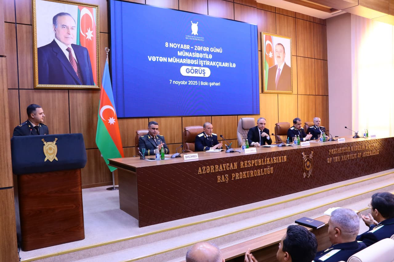 Baş Prokurorluqda "Vətən Müharibəsi"ndəki qələbənin beşinci ildönümü, "8 Noyabr Zəfər Günü" münasibətilə Vətən Müharibəsi iştirakçıları ilə görüş keçirilib.