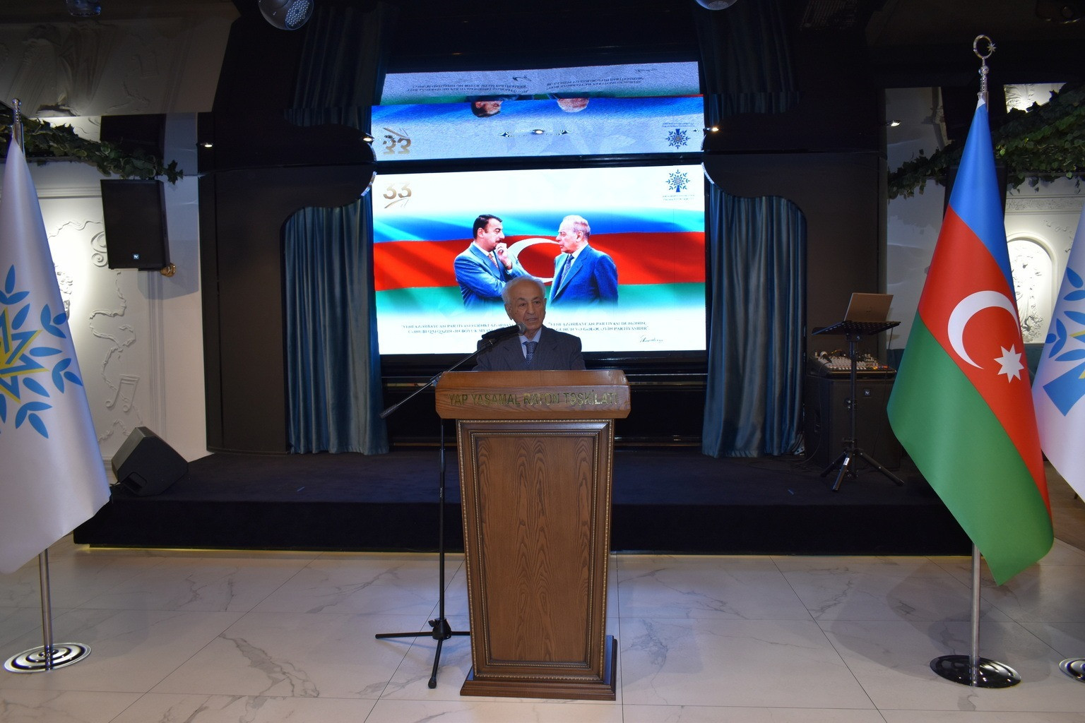 Giriş nitqi ilə çıxış edən Yeni Azərbaycan Partiyası Yasamal rayon təşkilatının sədri Bəxtiyar Nəbiyev qeyd edib ki, müasir, müstəqil Azərbaycanın tərəqqisi, möhtəşəm tarixi nailiyyətlər qazanaraq güclü - qüdrətli dövlətə çevrilməsi Ümummilli Lider Heydər Əliyevin ideyaları əsasında və Azərbaycan Respublikasının Prezidenti cənab İlham Əliyevin rəhbərliyi ilə fəaliyyət göstərən Yeni Azərbaycan Partiyası ilə bilavasitə bağlıdır.Yeni Azərbaycan Partiyası öz yaranışı ilə Azərbaycanın ictimai-siyasi fikir, siyasi fəaliyyət və mübarizələr tarixinə yeni bir keyfiyyət halı gətirdi. Müstəqilliyin ilk illərinin ictimai-siyasi proseslərinə, ümumi mənzərəsinə nəzər saldıqda görürük ki, Azərbaycan xalqı və dövləti üçün taleyüklü məsələlərin həlli məhz lider amili, onun qətiyyəti və uğurlu siyasəti, xalq-lider birliyi sayəsində mümkün olmuşdur. Yeni Azərbaycan Partiyasının siyasi zərurətdən və ictimai tələb əsasında yaranmış partiya olduğunu bildirən Bəxtiyar Nəbiyev qeyd edib ki, bu gün Prezident, Partiyamızın sədri cənab İlham Əliyevin rəhbərliyi ilə Azərbaycan öz müasir, möhtəşəm tarixini yaşayır. Əldə olunan Zəfərlər bu gün Azərbaycanı dünyada ən nüfuzlu ölkələrdən birinə çevirmişdir. Bu gün Prezident İlham Əliyevin rəhbərliyi ilə Qarabağ və Şərqi Zəngəzurda aparılan genişmiqyaslı quruculuq və bərpa proseslərində Heydər Əliyev Fondu da xüsusi humanitar, mədəni və sosial layihələrlə regionun dirçəlişinə mühüm töhfə verir. Birinci vitse-prezident, Yeni Azərbaycan Partiyası Sədrinin birinci müavini Mehriban xanım Əliyevanın rəhbərliyi bu təşəbbüslərə strateji istiqamət, zərif yanaşma və yüksək təşkilatçılıq gətirərək işlərin sürətli və keyfiyyətli icrasını təmin edir. Onun fəaliyyəti Qarabağın bərpasını milli həmrəyliyin, inkişafın və dövlətçilik ideyalarının real təcəssümü kimi daha da gücləndirir. Ölkəmizin ictimai siyasi həyatında Yeni Azərbaycan Partiyası hər zaman aparıcı mövqedə olub. YAP Yasamal rayon təşkilatı da hər zaman rayonun və Partiyanın ictimai-siyasi həyatında əvəzolunmaz rol oynayıb. Sonda Bəxtiyar Nəbiyev Yeni Azərbaycan Partiyasının yaradılmasının 33-cü ildönümü münasibəti ilə tədbir iştirakçılarını təbrik edib.