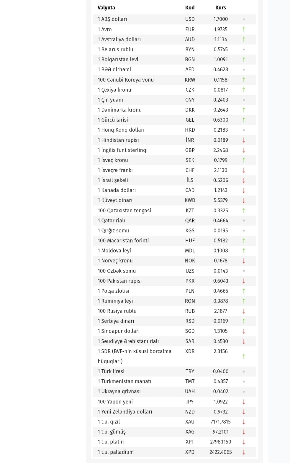 Azərbaycan Mərkəzi Bankı bu günün valyuta məzənnələrini açıqlayıb.