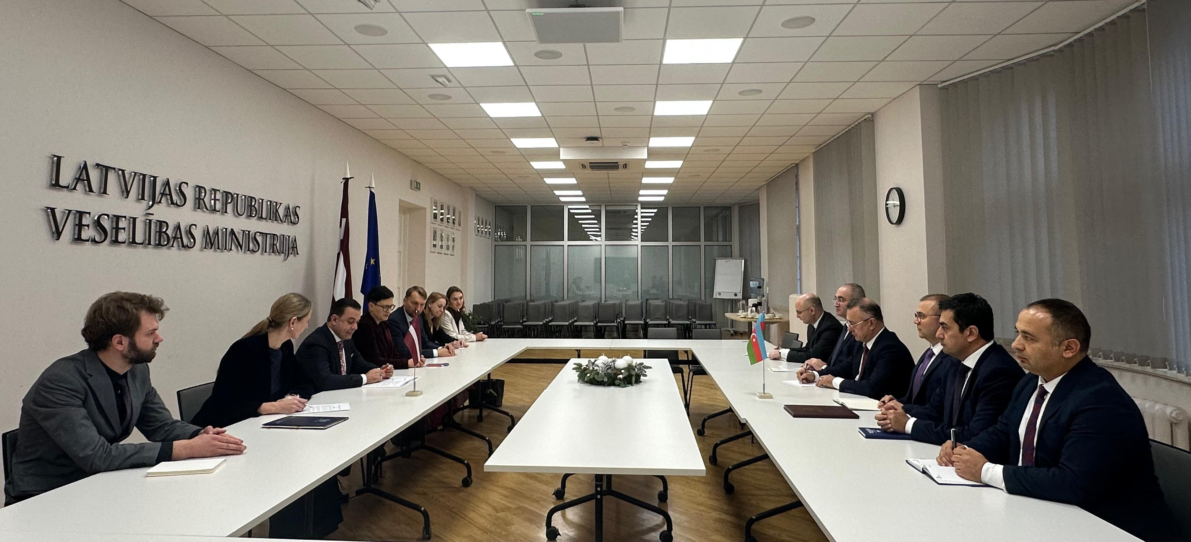 Görüş zamanı səhiyyə sistemlərinin inkişafı perspektivləri, rəqəmsal sağlamlıq, tibbi kadr hazırlığı, laborator xidmətlər və əczaçılıq sahəsində əməkdaşlıq imkanları müzakirə olunub. Daha sonra Azərbaycan və Latviya səhiyyə nazirlikləri arasında səhiyyə və tibb elmi sahəsində Əməkdaşlıq Sazişi imzalanıb.