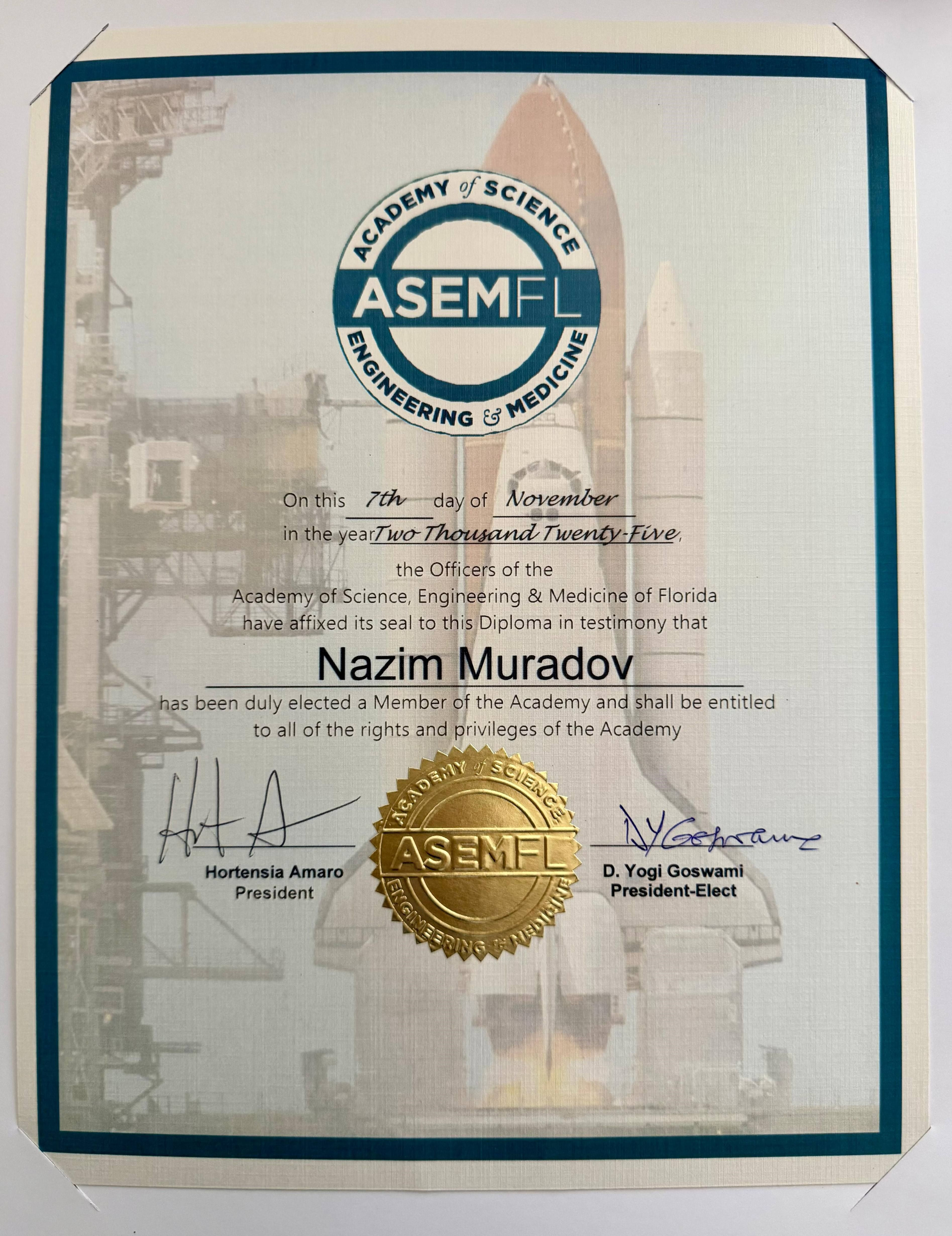 ABŞ-nin Orlando şəhərində keçirilən təntənəli mərasimdə azərbaycanlı alim Nazim Muradov Florida Elm, Mühəndislik və Tibb Akademiyasına (Academy of Science, Engineering and Medicine of Florida - ASEMFL) üzv seçilib.