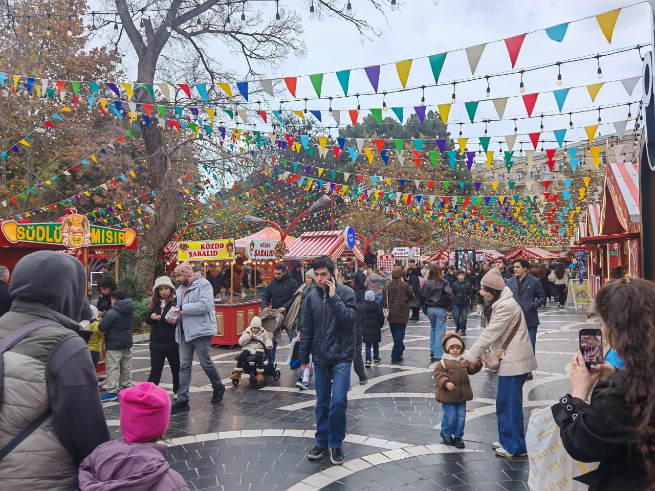 Buranın, doğrudan da, başqa ab- havası var. Adamlar o qədər çoxdur ki, iynə atsan yerə düşməz. Kimisi uşağı, nəvəsi ilə, kimisi dostu ilə gəlib. Əl- ələ gəzən cütlüklər də az deyil. Sağ- sol tərəfdəki stendlərdəki fərqli ərzaq məhsulları diqqət çəkir. Bir az mübaliğə ilə desək, fərqli qoxular insanı bihuş edir...