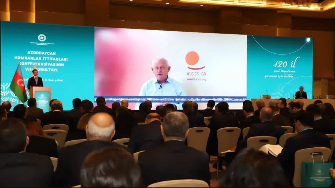 Tədbirdə Beynəlxalq Həmkarlar İttifaqları Konfederasiyasının Baş katibi Luk Trianqlın və Beynəlxalq Əmək Təşkilatı İşçilərin Fəaliyyəti Bürosunun direktoru Oliver Röpkenin qurultaya videomüraciəti izlənilib.