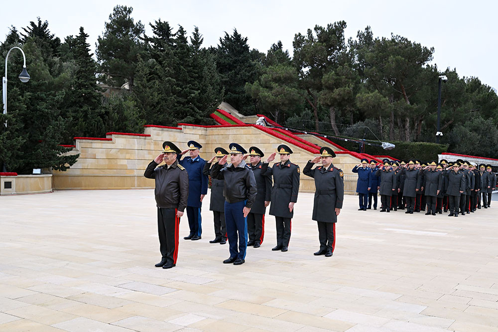 Müdafiə Nazirliyinin rəhbərliyi Şəhidlər xiyabanını ziyarət edib