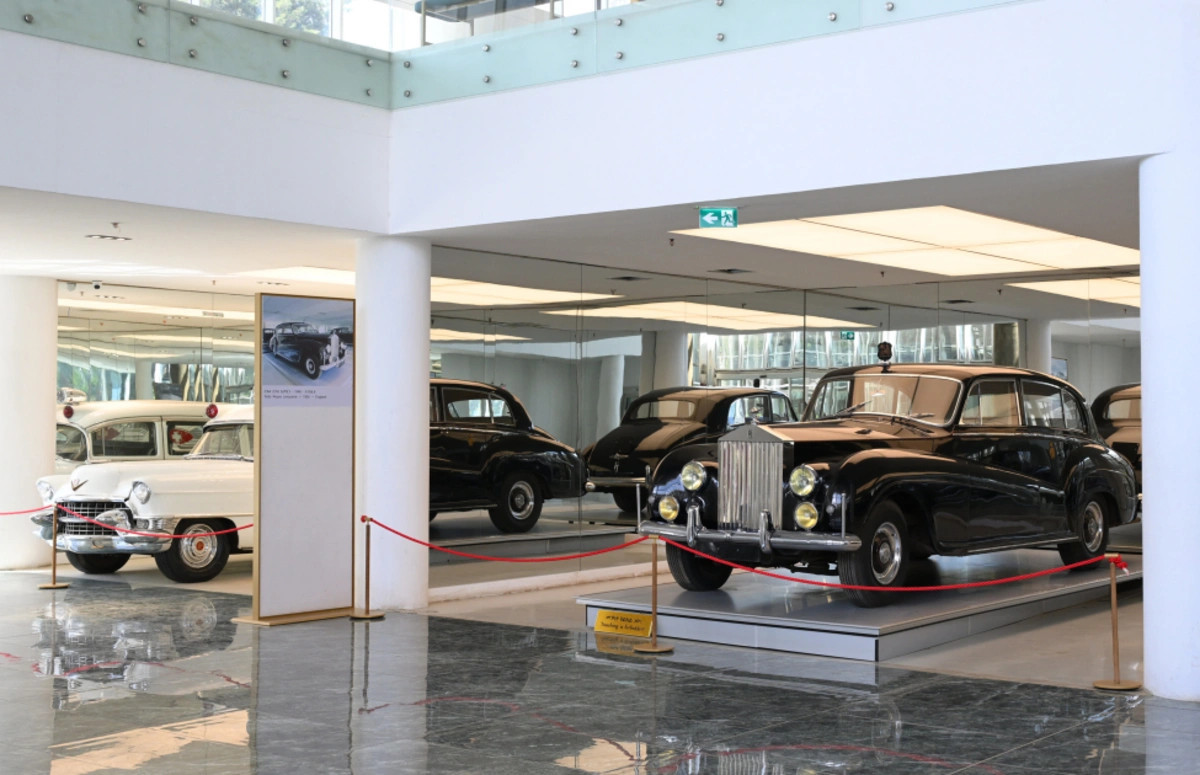Muzeydə imperatorun zəngin avtomobil kolleksiyası, həmçinin fəvvarələr, heykəllər və sıx yaşıllıqlarla bəzədilmiş saray kompleksi nümayiş etdirilir.