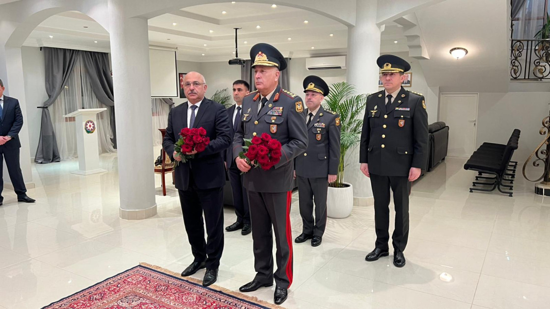 Daha sonra tədbir iştirakçıları səfirliyin foyesində yaradılmış və Qanlı Yanvar hadisələrini özündə əks etdirən fotostendlə tanış olublar. Ümummilli Lider Heydər Əliyevin portretinin önünə gül dəstələri qoyublar.