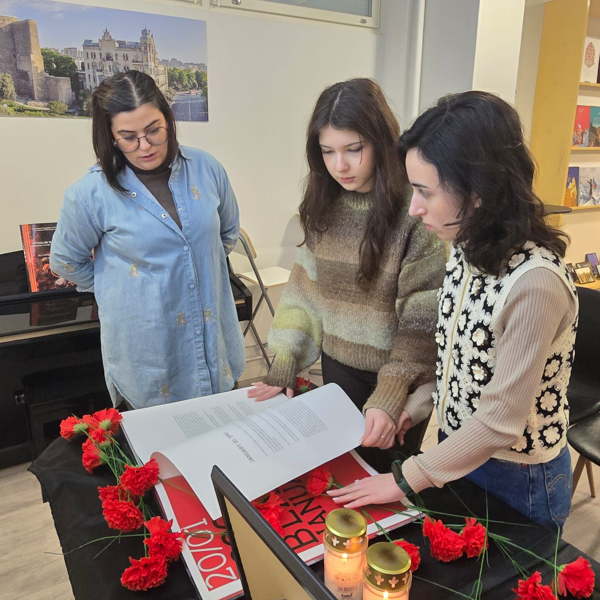 Helsinki Azərbaycan Evinin ziyarətçiləri guşədə 20 Yanvar hadisələrini əks etdirən foto-materiallar və digər məlumatlandırıcı resurslarla tanış olub, şəhidlərin əziz xatirəsini böyük hörmətlə yad ediblər.