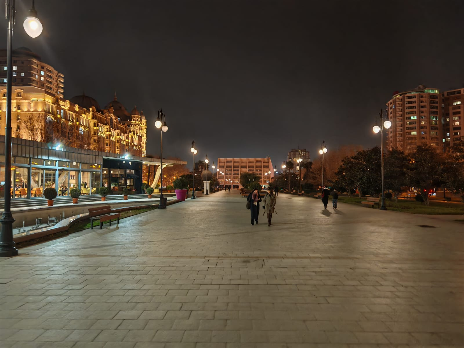 Parkda addımladıqca səs mənzərəsi dəyişir. Gündüzün tələsik çağırışları, telefon zəngləri, ucadan danışan səslər yox olur, yerini daha boğuq, daha yorğun bir uğultu tutur. Maşın motorlarının səsi sanki uzaqdan gəlir, sanki bu səs artıq təkcə texniki yox, emosionaldır. Bakı gecə insanı tələsdirmir, amma onu buraxmır da.