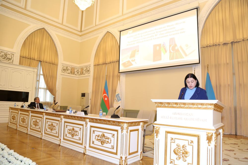 Məruzəçi, həmçinin dövlət başçısının “Azərbaycan Milli Elmlər Akademiyasının 80 illiyinin qeyd edilməsi haqqında”, “Üzeyir Hacıbəylinin 140 illiyinin qeyd edilməsi haqqında”, “Akademik Yusif Məmmədəliyevin 120 illiyinin qeyd edilməsi haqqında”, “Bəxtiyar Vahabzadənin 100 illiyinin qeyd edilməsi haqqında”, “Seyid Əzim Şirvaninin 190 illik yubileyinin qeyd edilməsi haqqında”, “Fətəli xan Xoyskinin 150 illiyinin qeyd edilməsi haqqında”, “Birinci Türkoloji Qurultayın 100 illik yubileyinin keçirilməsi haqqında” sərəncamları, “Azərbaycan Respublikasında Rəqəmsal İnkişaf Konsepsiyası”, “Azərbaycan Respublikasının 2025-2028-ci illər üçün süni intellekt Strategiyası” istiqamətində görülmüş işləri diqqətə çatdırıb, bu çərçivədə “AMEA yeniləşmə və islahat yollarında”, “Süni intellekt fəlsəfəsi və tarixi – mədəni epistemoloji yanaşma”, “Rəqəmsal sosiologiya: nəzəri, metodoloji və tarixi aspektləri” və digər nəşrlərin çap olunduğunu söyləyib.
