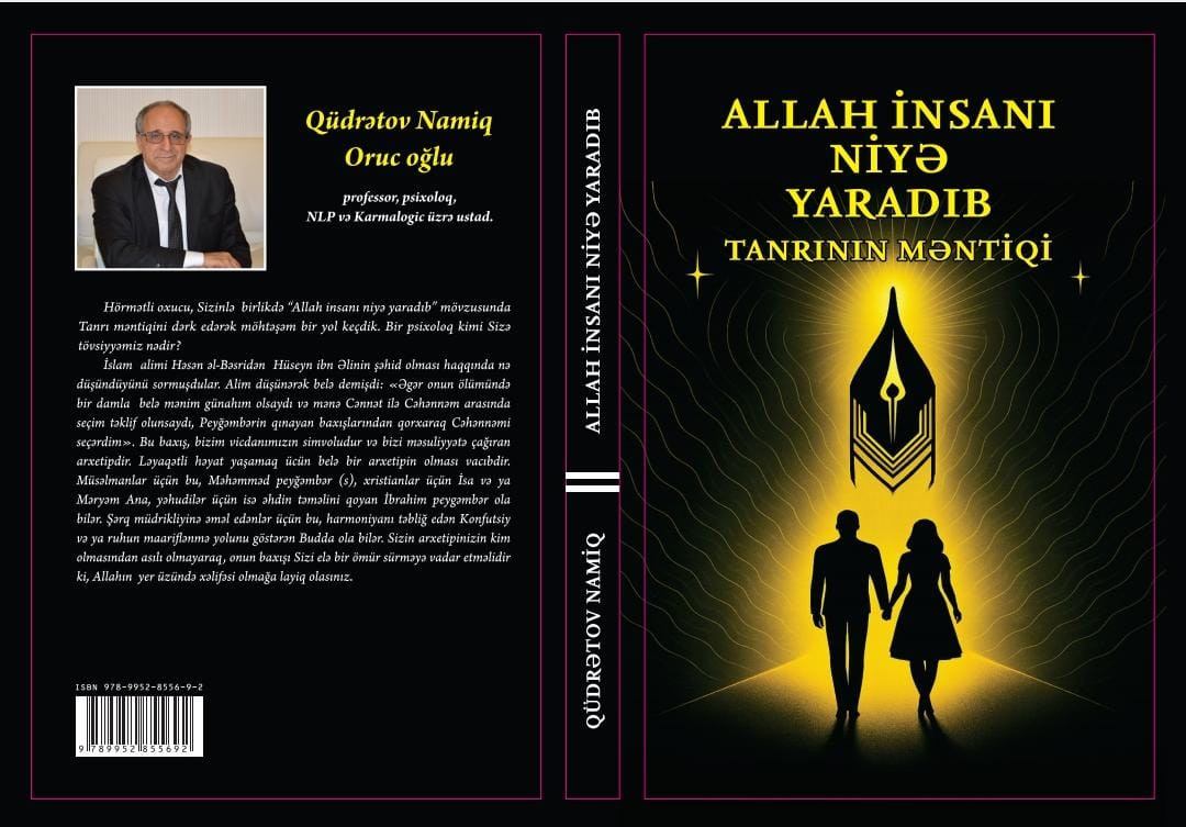 Professor, NLP (neyrolinqvistik proqramlaşdırma) və karmologiya üzrə ustad, uzun illər praktik psixoloq Namiq Qüdrətovun müəllifi olduğu “Allah insanı niyə yaradıb: Tanrının məntiqi” adlı kitab da məhz bu suallar üzərində düşünmək cəhdidir. Müəllif burada oxucuya hazır cavablar təqdim etmir, əksinə, insanın iman ehtiyacı, azad iradəsi, məsuliyyəti və daxili mübarizəsi haqqında dialoqa dəvət edir. Kitabda din anlayışı sadəcə qaydalar toplusu kimi deyil, insanın hansı dəyərlərə xidmət etdiyini üzə çıxaran bir seçim mexanizmi kimi şərh olunur. Əsərdə ilahi məntiq mövzusu qədim teoloji suallar fonunda araşdırılır: insanın seçim azadlığı niyə var, şər niyə mövcuddur, həyat bir sınaqdırmı və bu sınaqda insanın rolu nədir? Bu sualların qəti cavablarından çox, onların doğurduğu düşüncə prosesinə diqqət çəkilir. Müəllif yanaşması psixoloji təhlil ilə dini-fəlsəfi baxışları bir araya gətirməyə çalışır.