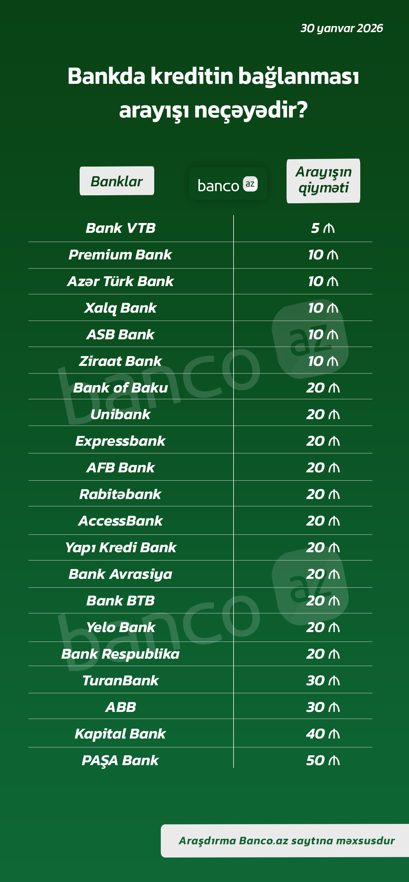 Banklarda kreditin bağlanmasına dair aldığımız arayışlar müxtəlif qiymətə təklif edilir.