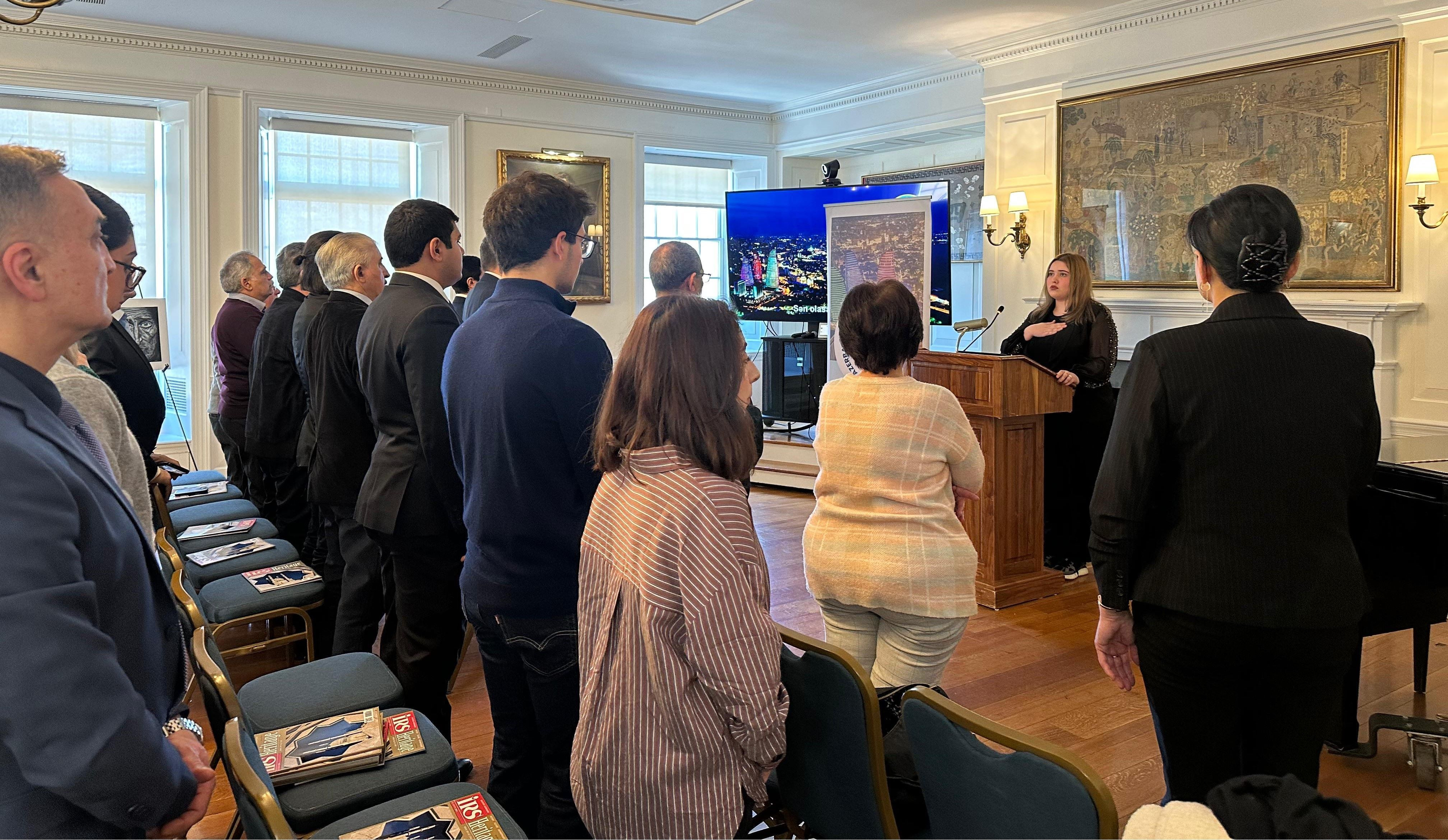 Əvvəlcə Azərbaycan və ABŞ-nin Dövlət himnləri səsləndirilib, Xocalı soyqırımının qurbanlarının əziz xatirəsi bir dəqiqəlik sükutla yad edilib.