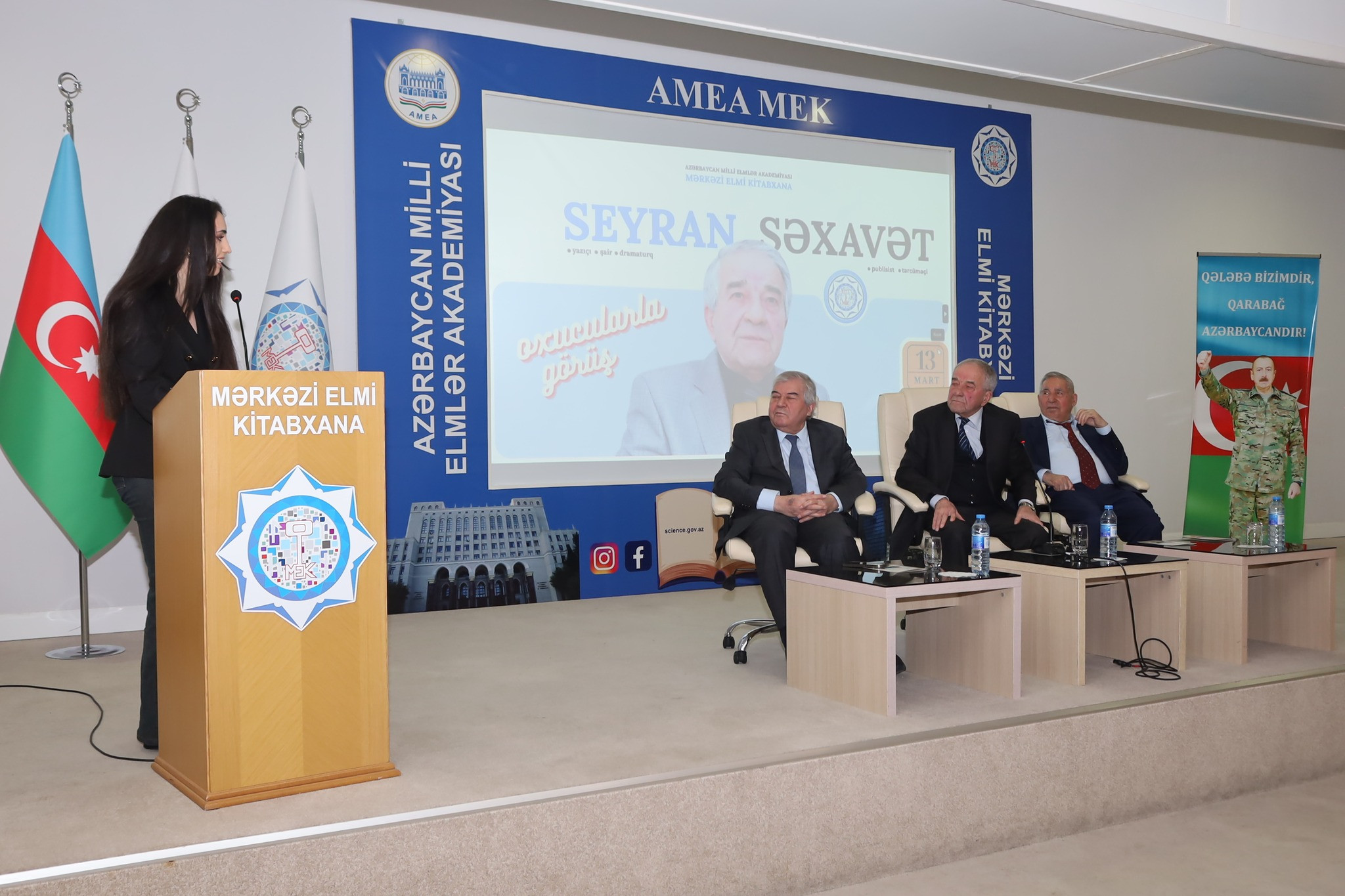 Mərkəzi Elmi Kitabxanada tanınmış yazıçı və şair Seyran Səxavətlə görüş keçirilib
