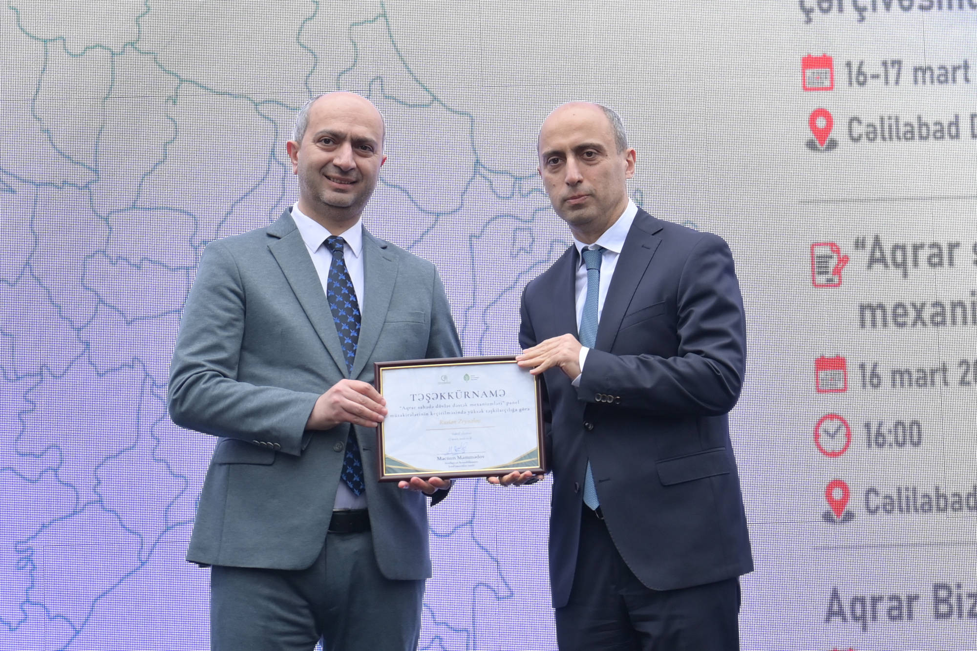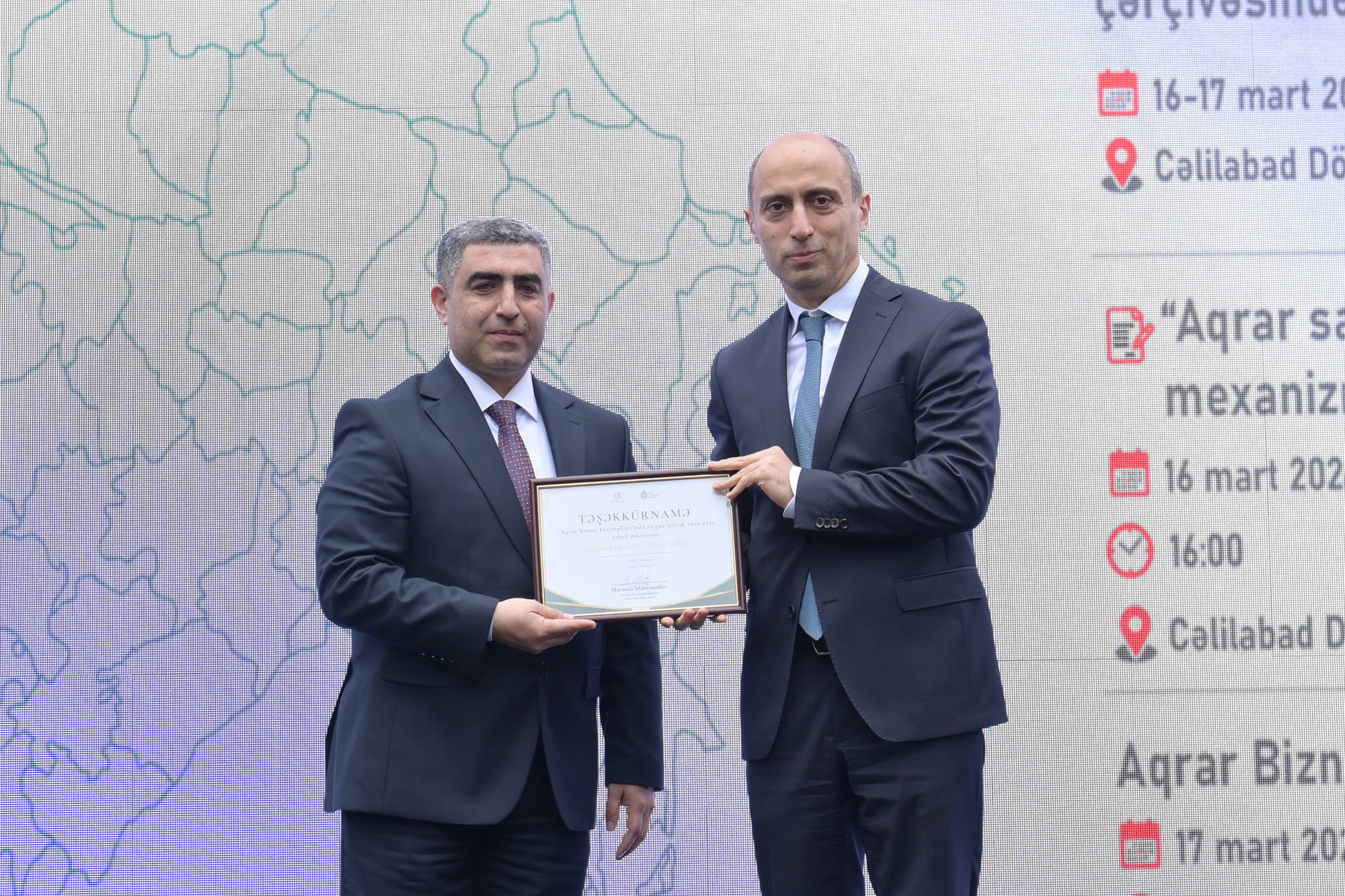 Çıxışlardan sonra Aqrar Biznes Festivalında fəal iştirakına və tədbirin təşkilinə göstərdikləri dəstəyə görə bir sıra qurum və təşkilatların nümayəndələri təşəkkürnamələrlə təltif olunublar.