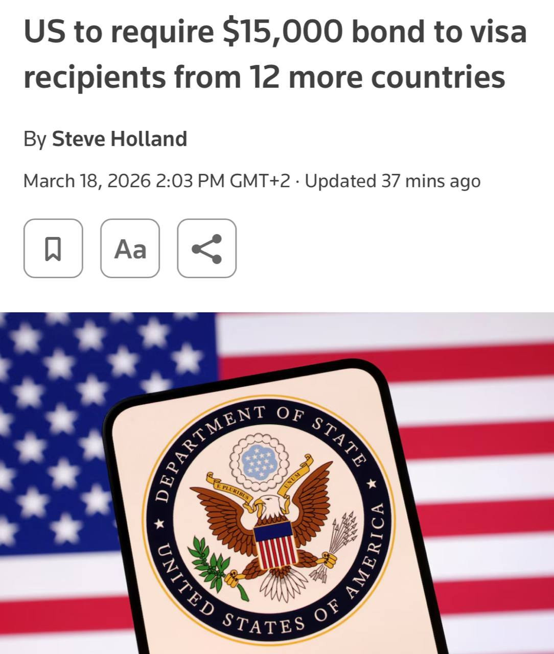 ABŞ B1/B2 vizalarına (işgüzar və turizm məqsədli) müraciət edənlər üçün 15 min dollarlıq depozit tələbi tətbiq etdiyi ölkələrin siyahısını genişləndirib.