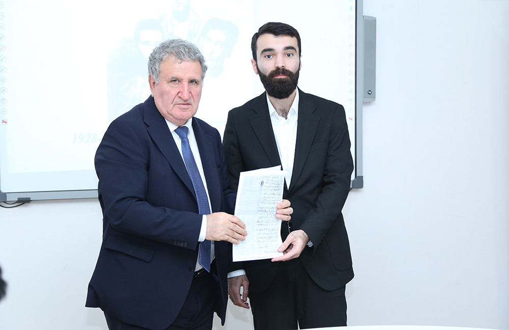 Sonda Səməd Vurğunun ev muzeyinin direktoru Vurğun Vəkilova professor Asif Rüstəmlinin arxivdən aşkar etdiyi şairə məxsus əlyazmanın surəti təqdim olunub. Vurğun Vəkilov göstərilən hörmət və ehtirama görə tədbirin təşkilatçılarına və iştirakçılarına minnətdarlığını bildirib.
