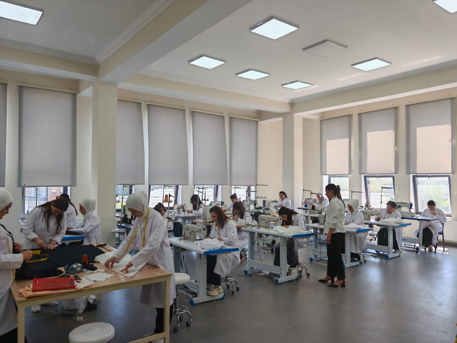 Dərzi və toxuculuq emalatxanasında isə fərqli bir canlanma var idi. Onlarla müasir tikiş maşınının eyni anda işləməsi, parça kəsimi və dizayn prosesi gələcəyin moda sənayesinin bünövrəsinin burada qoyulduğunu nümayiş etdirir. Gənc xanımların hər bir tikişə verdiyi diqqət, peşəyə olan hörmətin bariz nümunəsidir.