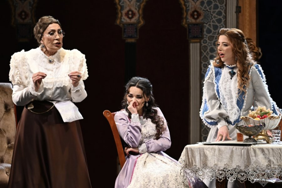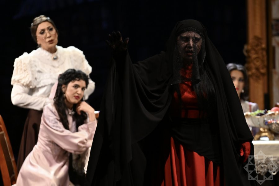 Sarsıdıcı proloqdan sonra rejissor bizi hadisələrin başlanğıc nöqtəsinə – tarixin və taleyin təqvim ardıcıllığının qırıldığı bir ana qaytarır. Bu keçid tamaşaçıya imkan verir ki, əsərin finalındakı çöküşün miqyasını personajların itirmək üzrə olduğu “itirilmiş cənnət” tablosu ilə müqayisə etsin. Səhnədə Hacı Zeynalabdin Tağıyevin ailə üzvləri – həyat yoldaşı Sona xanım Ərəblinskaya (Gültac Əlili), qızları (Ayan Qurbanova, İranə Kərimova, Nəzrin İsmayılzadə), oğlu Məhəmməd (Əli Kərimov) və qulluqçu Raisa (Naidə Orucova) arasındakı dialoqlar bütöv bir dövrün kübar mühitinin bədii rekonstruksiyasıdır.