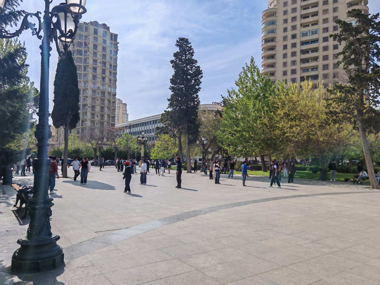 Ətrafdakı hündür, müasir binalar parkın yaşıl örtüyü ilə kəskin təzad təşkil edir. Şəhərin beton soyuqluğu bu bağın içində əriyib gedir. Bu, sanki beton cəngəlliyin ortasında nəfəs almaq üçün saxlanılan sehrli bir adadır.